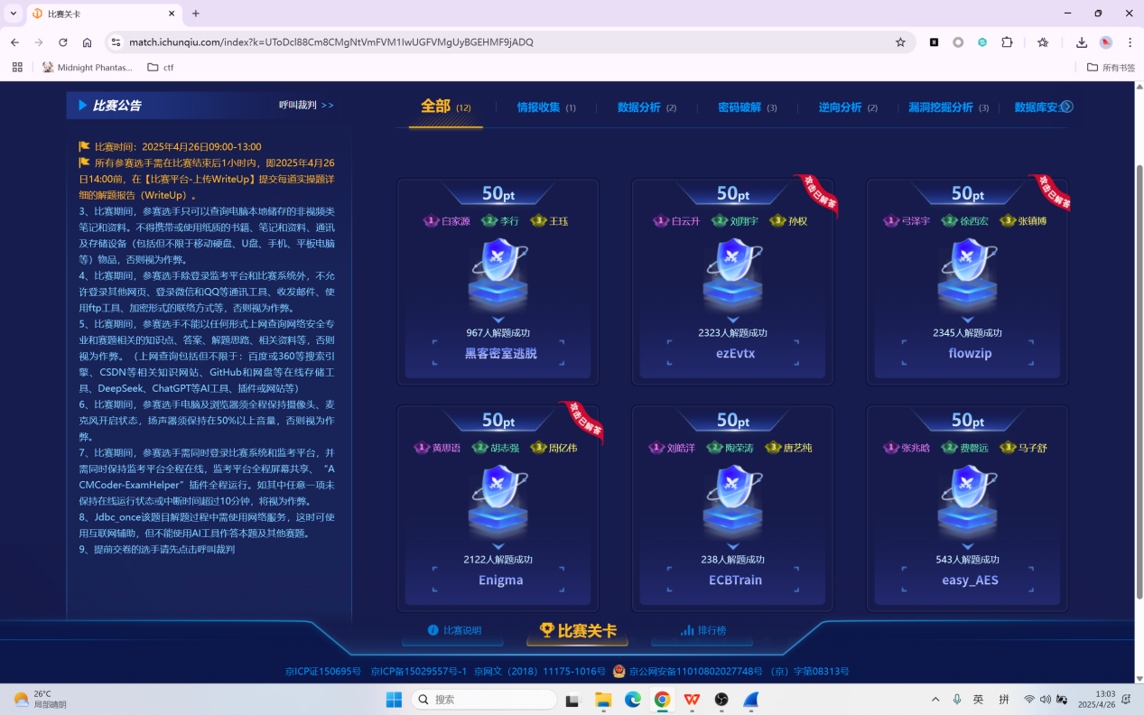 写出了5道基础的签到题,基本上是有省奖了,但是web的黑客的那道题真的不会python,看不懂加密函数,解密方法就不知道了,真的该好好学python了。