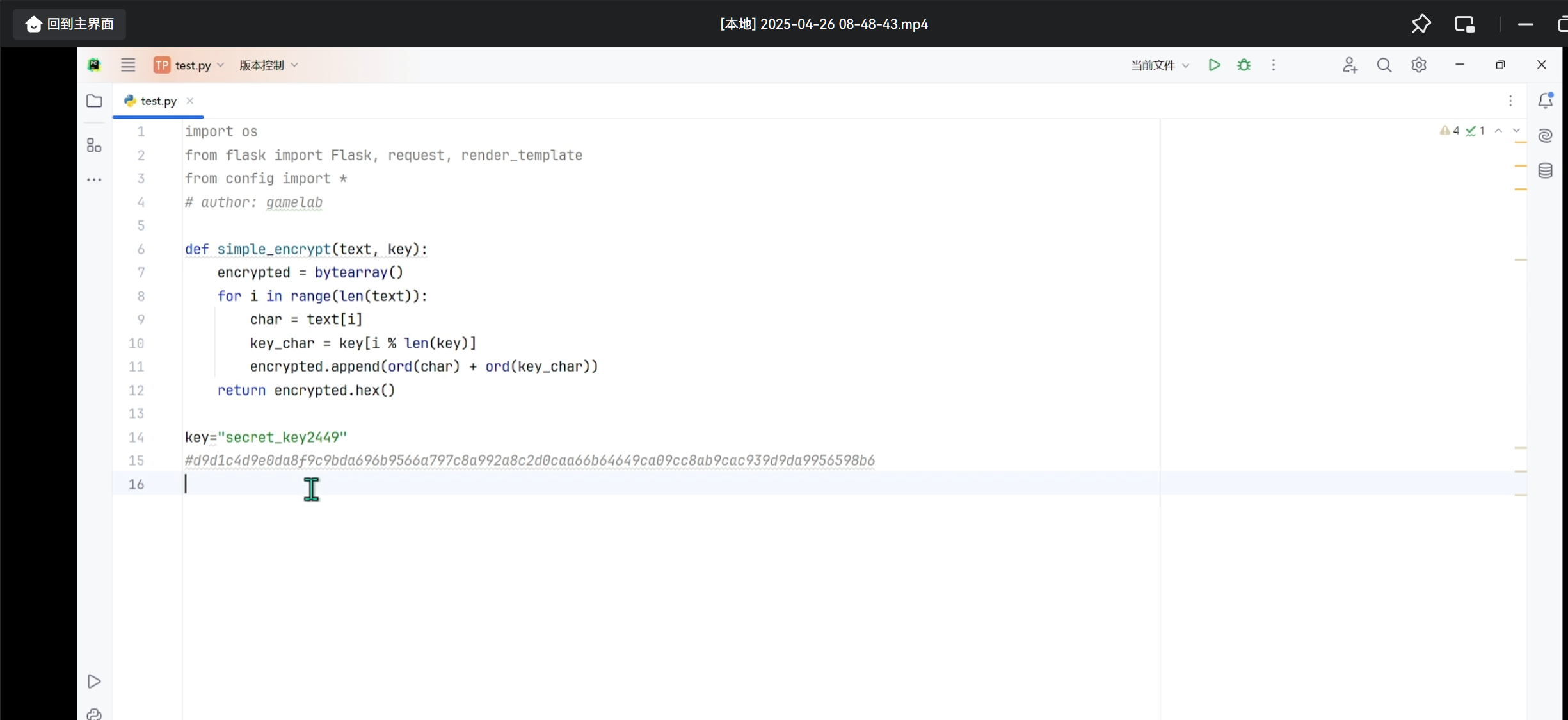 密钥就有了,在加上加密函数已知,密文已知,就可以推导出加密的flag是什么了,但是这个加密函数我看不懂,在平时就直接搜了,但是考试就没办法了,所以这一题就寄了。