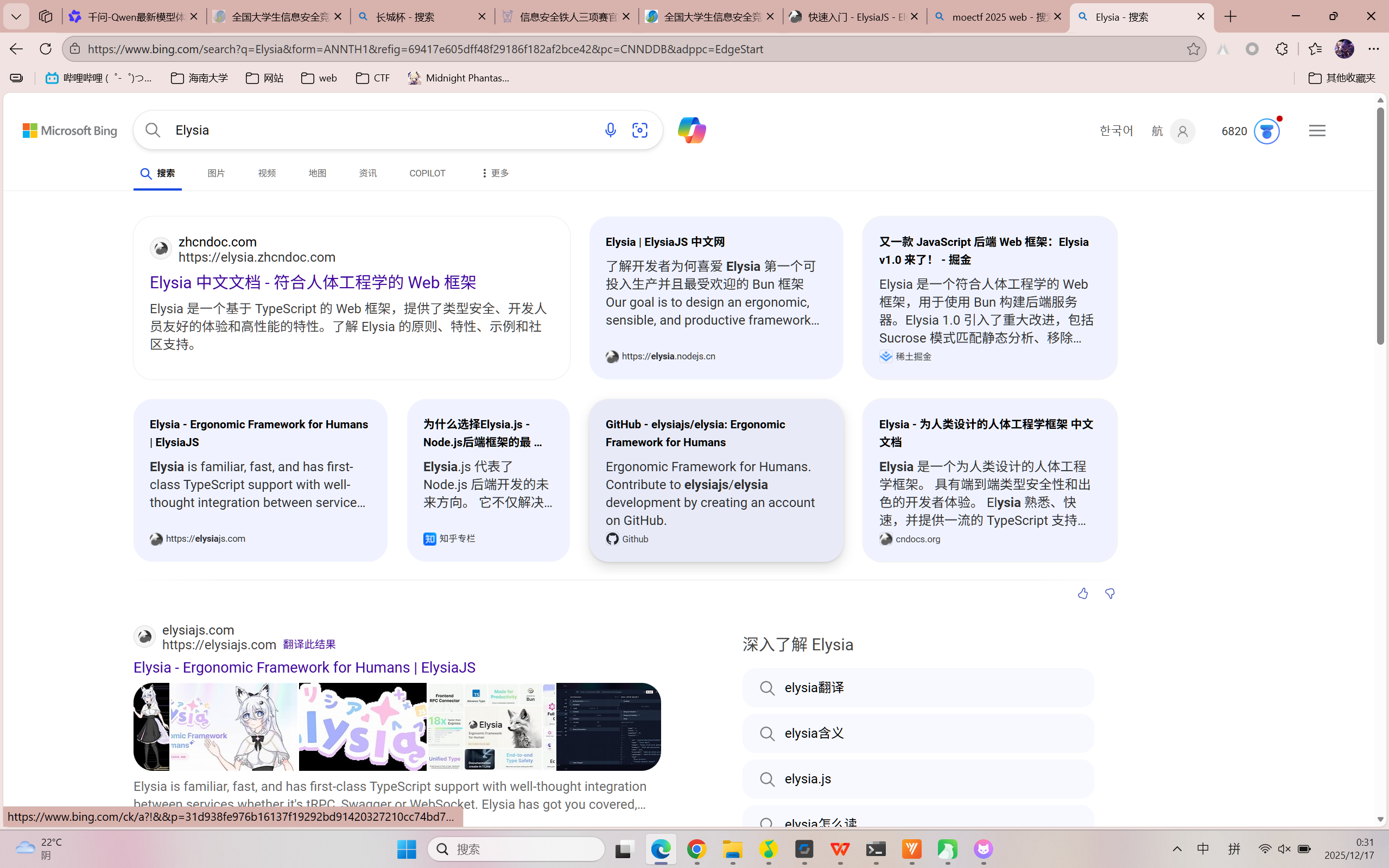抽到了 Elysia 肯定是要学一下的,官方文档:[https://elysia.zhcndoc.com/](https://elysia.zhcndoc.com/)